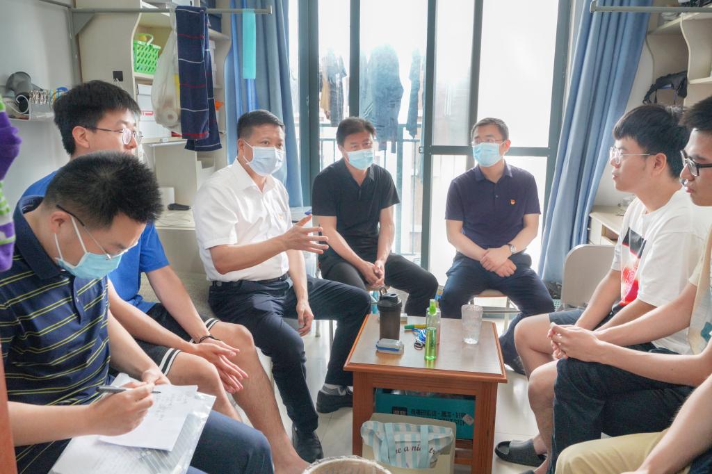 6月1日,校党委书记、信息工程学院研究生党支部政治辅导员张利民前往仙林校区16号研究生宿管站717寝室,走访看望结对联系的学生宿舍的同学们。党委常委、组织部部长赵国栋,党委办公室、校长办公室主任孙彬,党委研究生工作部部长孙丹兵,信息工程学院党委书记周亚芳,档案馆馆长兼党委办公室、校长办公室副主任郑锷,党委研究生工作部副部长、研究生院副院长华凌志,信息工程学院党委副书记袁军以及信息工程学院研究生辅导员刘芳等同志陪同走访。