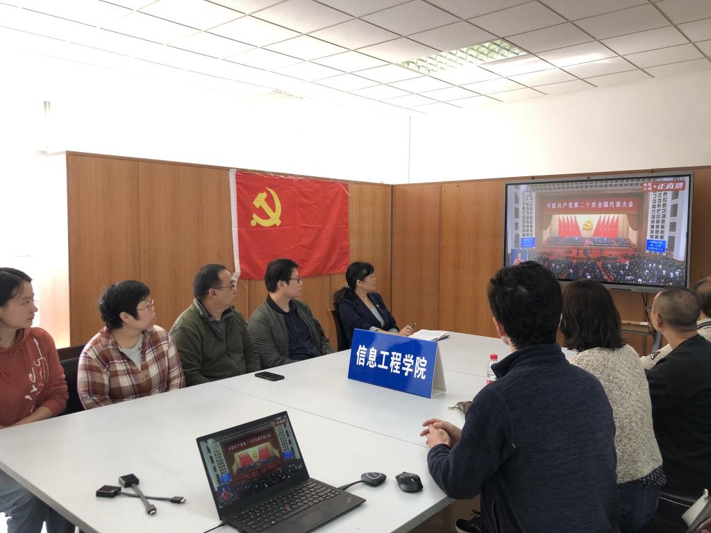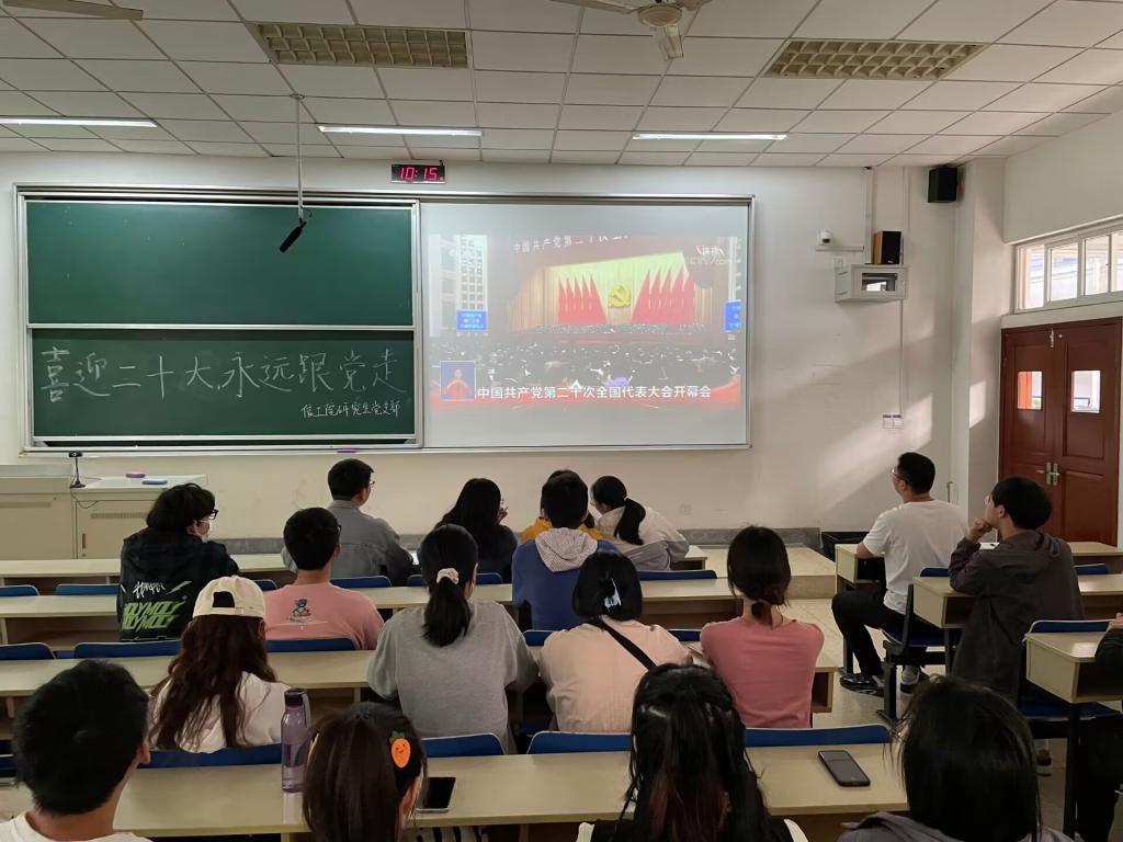 中国共产党第二十次全国代表大会于1016日在北京隆重召开。为深入学习贯彻党的二十大精神,信息工程学院全体师生以线上、线下相结合的方式集中收看收听党的二十大召开盛况。老师们纷纷表示,将认真学习领会党的二十大精神,在全面建设社会主义现代化国家的新征程中勇担培育时代新人的历史使命;同学们也表示将努力学习专业技能,毕业后到祖国和人民最需要的地方去建功立业。