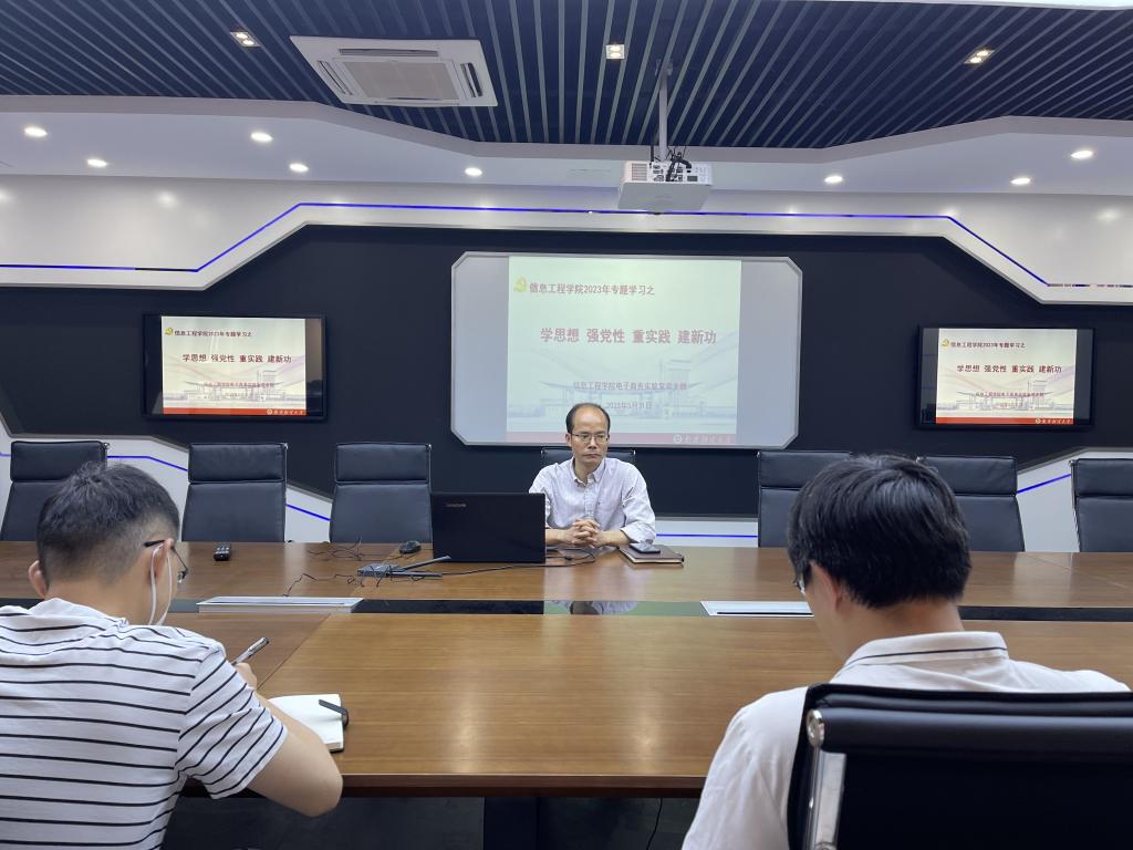 5月31日上午,信息工程学院院长、电商国地联合工程实验室党支部书记黄健教授在德业楼211会议室,以“学思想、强党性、重实践、建新功”为题,给支部教师党员上了一堂生动的专题党课。