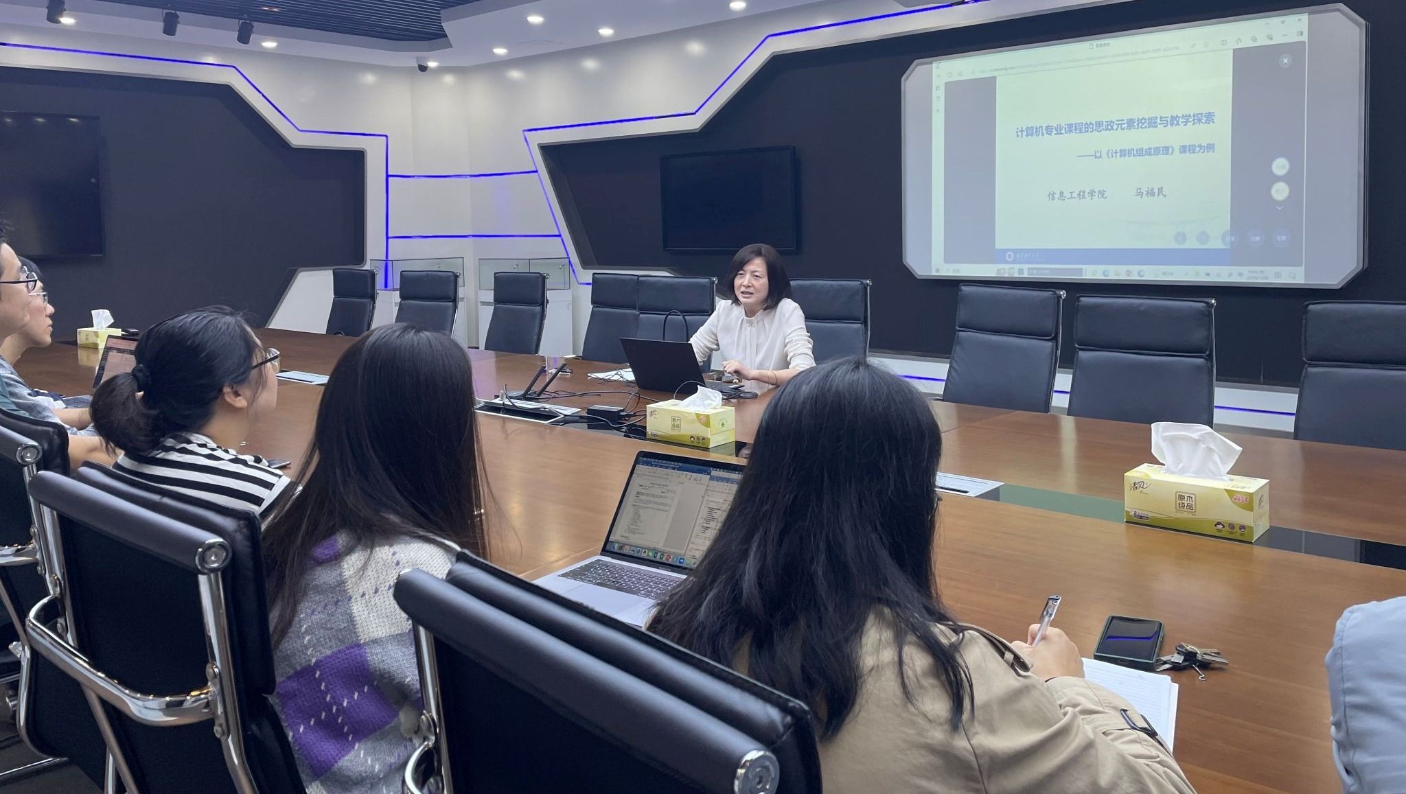 根据学校2024年秋季学期“名师名课示范观摩”的整体安排,我院于10月8日下午14:00在德业楼211会议室举行了2024年秋季学期“名师名课示范观摩”活动,学院邀请了我院国家一流本科课程负责人马福民教授为全院青年教师做题为“计算机专业课程的思政元素挖掘与教学探索——以《计算机组成原理》课程为例”的教学经验分享。此次示范观摩活动由李树青副院长主持,我院部分青年教师参加了此次观摩活动。