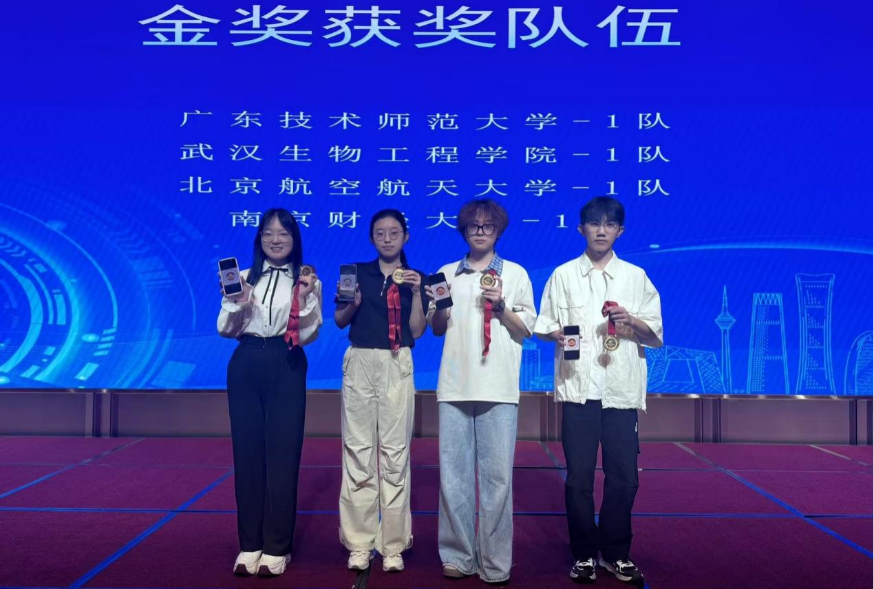 我院参赛队伍在闭幕式上领取金奖(从左至右:朱明慈、吴亦乔、杨陆、王沁园)