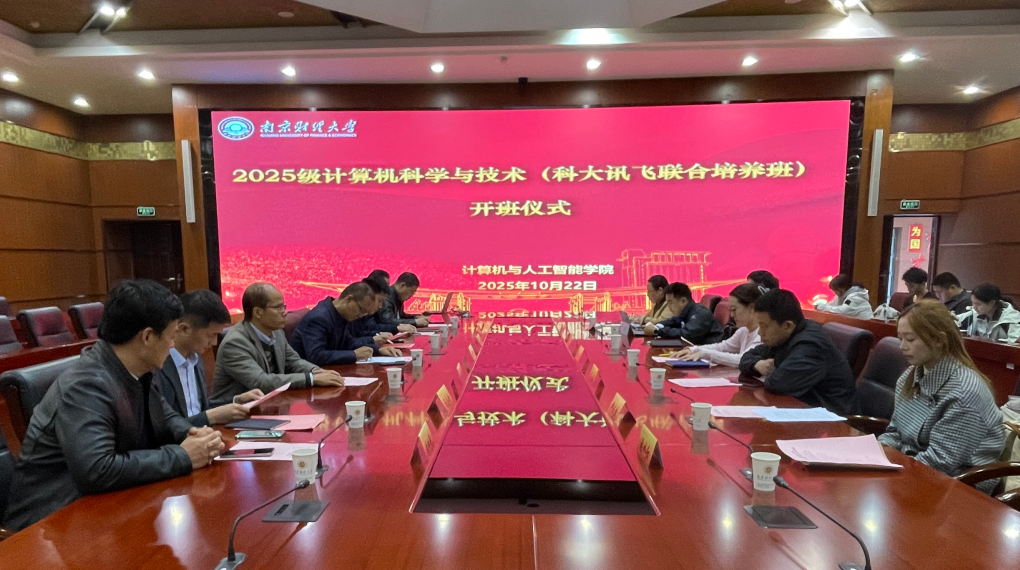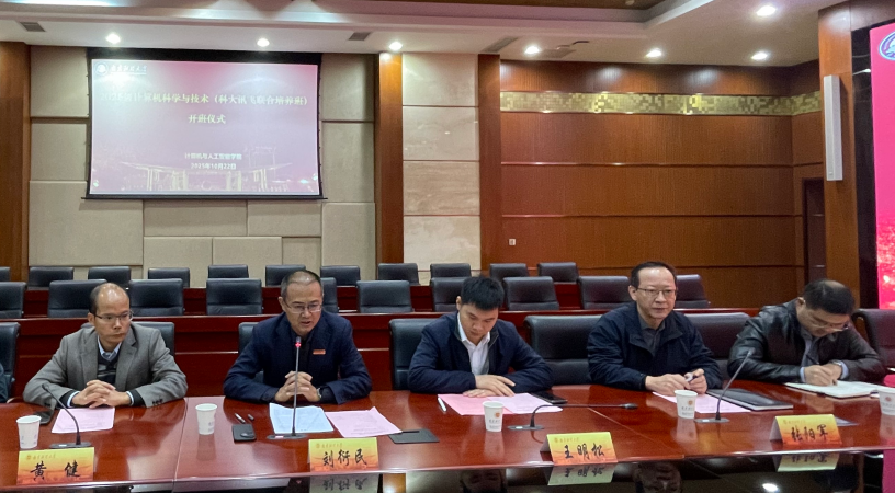 2025年10月22日下午,我院计算机科学与技术专业(科大讯飞联合培养班)开班仪式在工科楼二楼会议室举行。校党委常委、副校长刘衍民、计算机与人工智能学院党委书记张阳军、院长黄健、副书记马健、副院长李树青,科大讯飞江苏大区高教行业总监王明松、江苏大区高教客户经理陈志全、产教融合业务项目经理张琦、产教融合业务运营经理张荣豪,以及计算机科学与技术系主任、辅导员、班主任,和计算机科学与技术(科大讯飞联合培养班)全体学子共同见证了这一重要时刻。仪式由william英国党委书记张阳军主持。