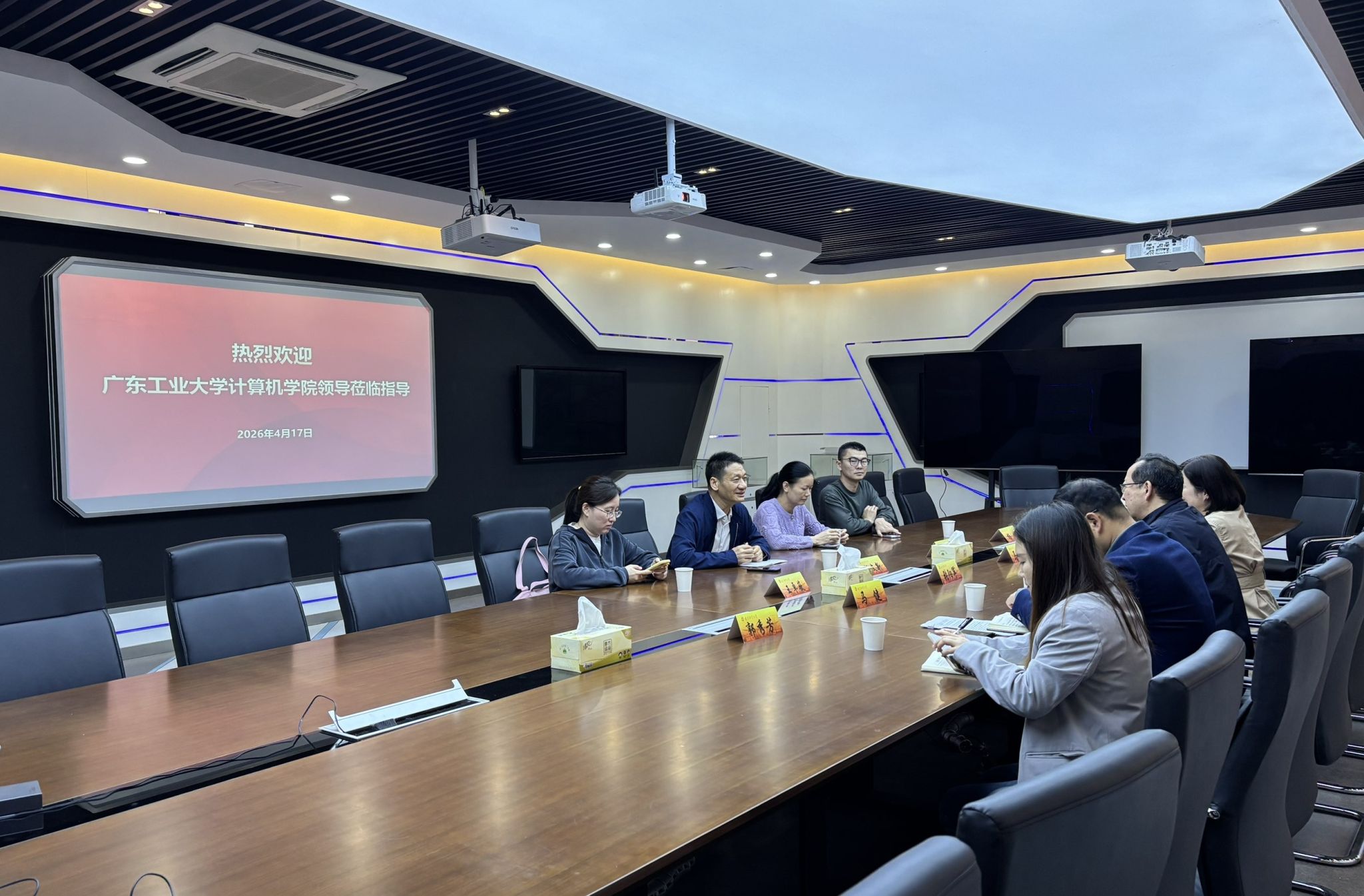 4月17日,广东工业大学计算机学院党委书记杨文新一行来我院调研交流,座谈会在德业楼211会议室举行。广东工业大学计算机学院副院长曾安、王卓薇,学工办主任杨博,我院党委书记张阳军、党委副书记马健、副院长马福民、研究生党支部书记郭秀芳等参加座谈会。