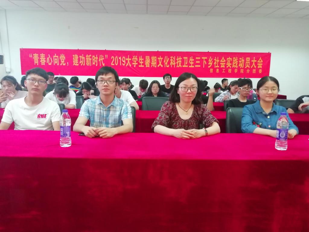 5月13日下午16:00,我校信息工程学院分团委在仙林校区德业楼Z4-406举办了2019年信息工程学院大学生暑期社会实践动员大会暨分享交流会。大一各班的学生干部参加了会议,我院分团委书记张媛媛老师,三位优秀团队代表和个人代表:邓华、陈晓晓、汪刘洋受邀出席本次会议。