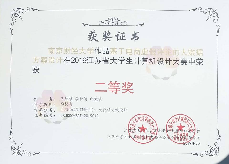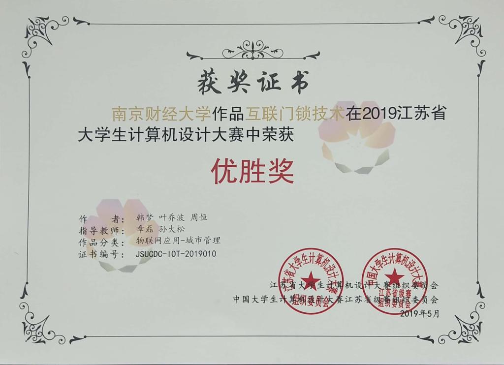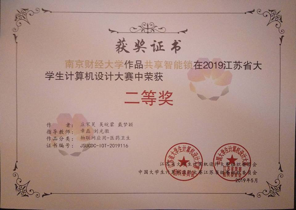 近日,由江苏省教育厅高等教育处组织,江苏省计算机学会主办的2019江苏省计算机设计大赛暨全国大学生计算机设计大赛江苏赛区现场决赛在江苏徐州中国矿业大学落下帷幕。我校选送的四件作品参加了这项赛事的角逐,其中由我院李树青老师指导,2018级李梦倩、王欣哲、邱荣燚等三位同学创作的“基于电商虚假评论的大数据方案设计”获得“大数据(省级赛用)- 大数据方案设计”普通组本科组二等奖,由章磊老师指导,2016级庄家昊、吴皖蒙、戴梦颖等三位同学创作的“共享智能锁”荣获“物联网应用-医药卫生”组本科组二等奖,由章磊老师指导,2016级韩梦、叶乔波、周恒等三位同学创作的“互联门锁技术”荣获“物联网应用-城市管理”本科组优胜奖。前两支队伍将代表我校参加2019年中国大学生计算机设计大赛普通组现场决赛。