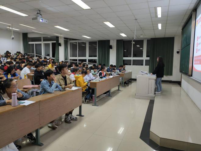 小老师以《我和我的祖国》这部影片,通过一名当代大学生自身的体验与理解,引发同学们思考作为一名当代大学生对祖国应有的责任。这不仅引发了同学们认真思考,也表现出同学们对未来的美好憧憬。