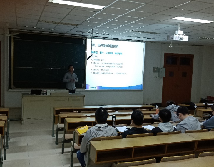讲师先通过今年七月编程语言排行榜以及Java生态链体系展现出Java语言早已成为IT行业重要技术之一,随后介绍了与之相关的证书及其用途、种类以及申报材料。讲座期间,讲师也对达内科技职工教育集团的优势以及市场风评做出客观说明,并对现在市场上IT行业发展前景以及应用领域做了详细解读。参与的同学认真聆听并择其要做笔记,表现出浓厚的兴趣。