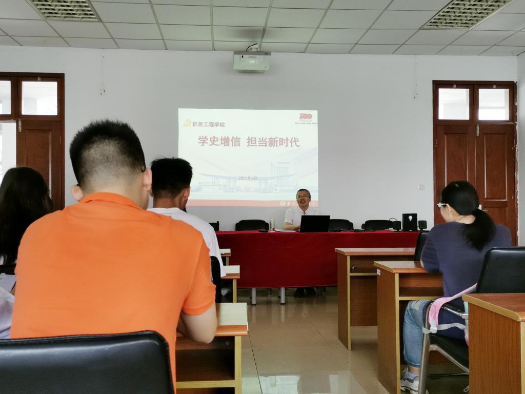 6月4日中午,信息工程学院院长、政治辅导员曹杰教授在仙林校区德业楼406 为2021届全体本科毕业生党员上“学史增信,担当新时代”的专题党课。