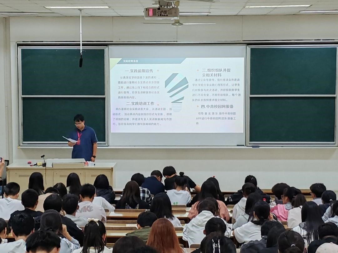 主持人徐一方首先介绍了2023年暑期社会实践的系列优秀宣传成果,并从实践主题、前期准备、进程管理、注意事项、奖项设置等方面对暑期社会实践进行介绍。
