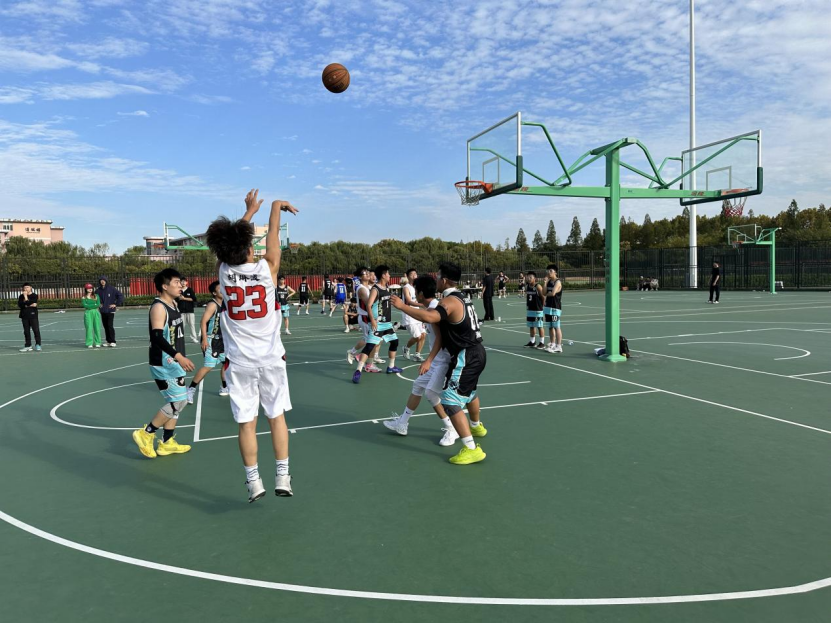 下半场,我院球员乘胜追击,在改进战术策略后,成绩得到明显提升。阳光下,少年们挥洒着青春热血的汗水,坚持不懈,全力以赴。弓身、跳跃、投篮,最终以23:9的好成绩战胜新闻学院。赛后双方热情交流、友好握手,现场气氛热烈融洽。