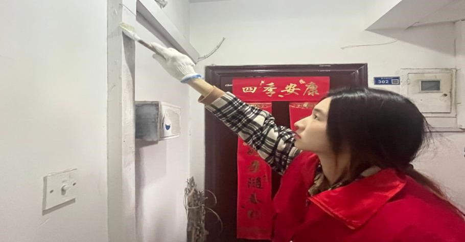 在活动过程中,志愿者们首先解决了困扰居民的“小广告”问题。他们提着社区分发的油刷工具,清理了随便张贴在住户房门口的小广告。在清理完成之后,志愿者们又有序来到了社区的花园处,用工具捡拾了散落在花坛中的垃圾,烟头等杂物。