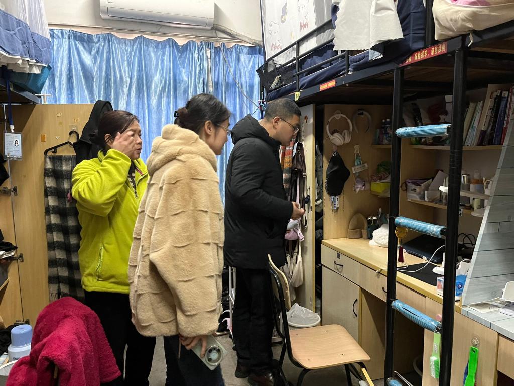 为加强校园的安全稳定、维护良好的校园秩序,加强同学们的宿舍安全意识,3月5日下午,信息工程学院党委副书记马健、学工办主任张媛媛、分团委书记兼辅导员陈鑫、本科生第一党支部书记兼辅导员张婷等一行人前往我校仙林校区中苑学生宿管站,对部分学生宿舍开展安全卫生检查。