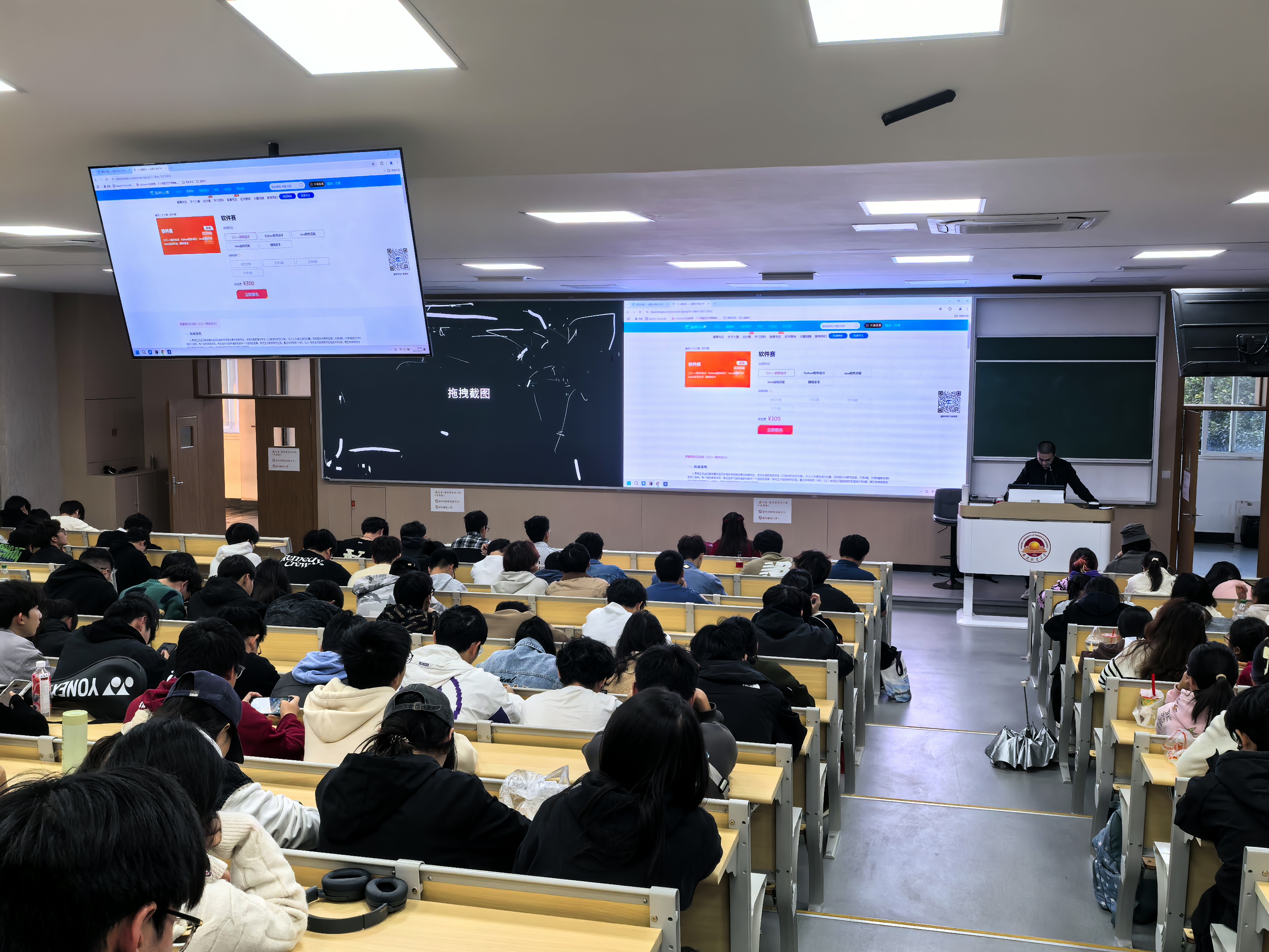 随后徐老师分享了“蓝桥杯”从零到拿奖竞赛攻略,向学生们展示了专业比赛的例题,让同学们深入了解大型专业比赛的试题类型,试题难度和试题考点。并且深入浅出地讲解如何准备和参与专业比赛。徐老师带着同学们从读题入手,分析考点,掌握答题思路,再亲自示范代码得出结论。细致地讲解了示例例题。