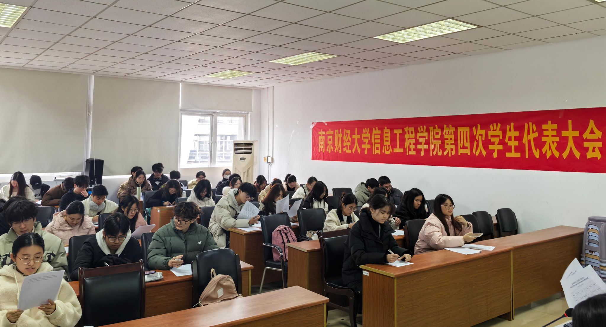 根据上级有关规定,结合学院具体情况,经院党委批准,2024年12月11日,信息工程学院第四次学生代表大会在德业楼406召开。学生会各部门相关负责人、学生代表参加会议。本次会议目的在于总结院学生会的工作情况,讨论今后发展方针与定位,重申工作的宗旨与目标。