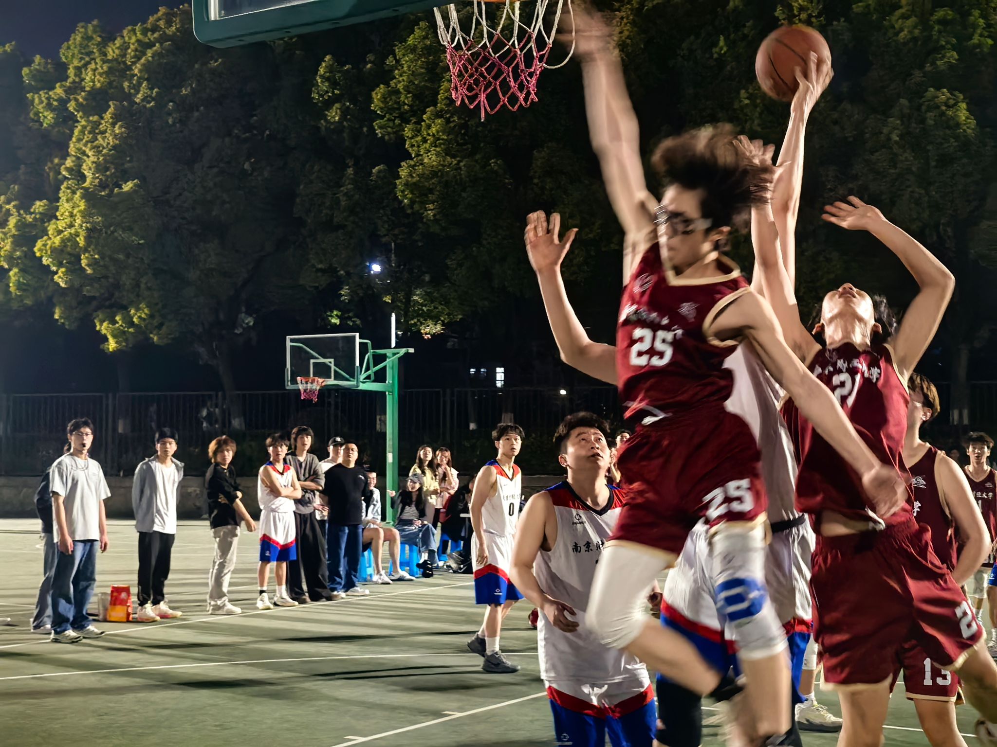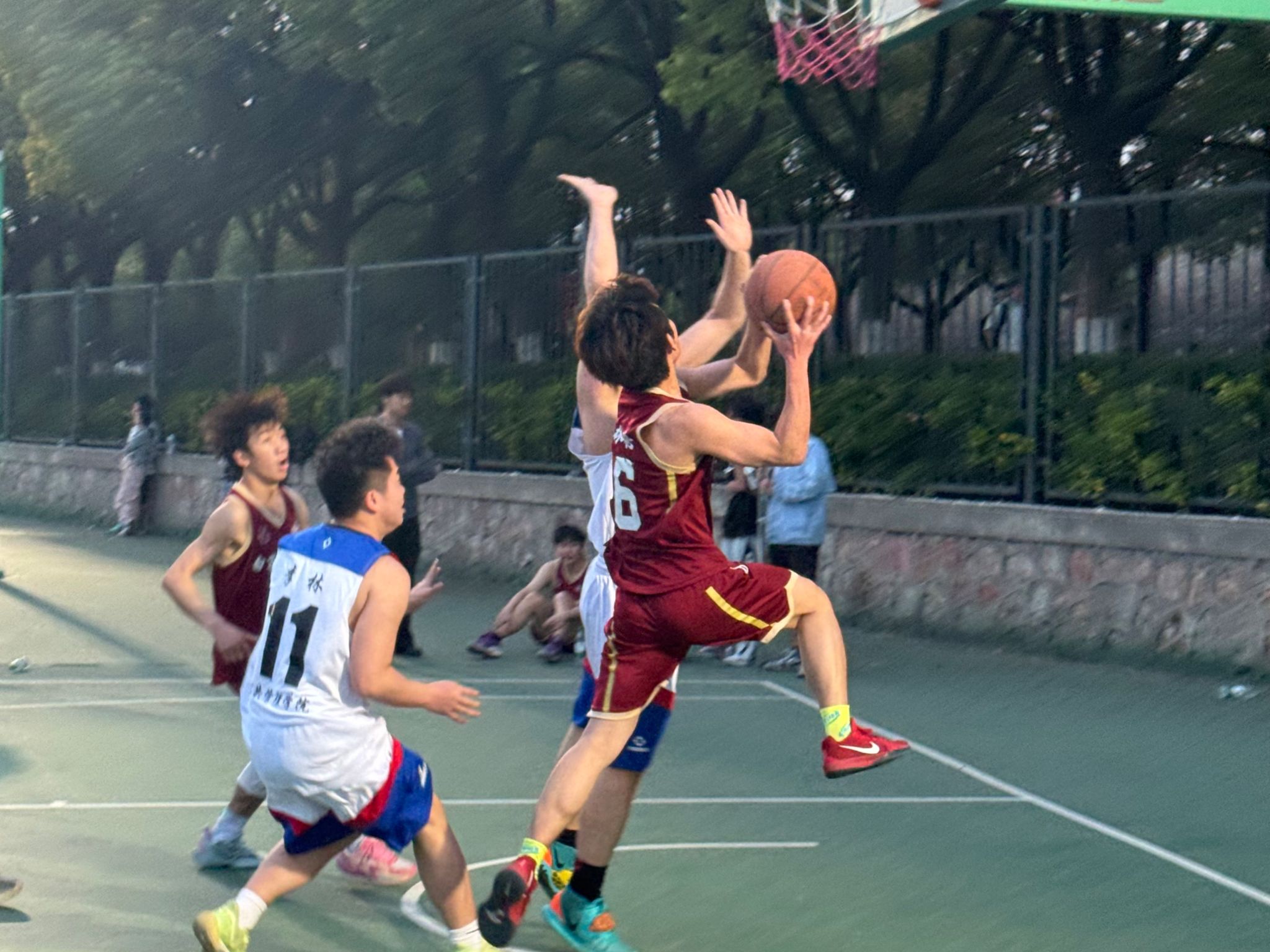 暮色初合的球场上,橘色夕阳为球员们镀上金边。开场哨响,我院16号徐林聪,凭借精准的罚球率先打破僵局,弧线划过空气的瞬间,操场爆发欢呼声。公共管理学院则以教科书般的联防予以回应,首节结束时双方比分胶着。