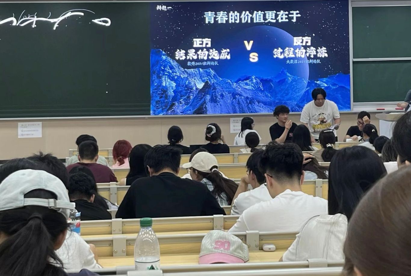 软件2402班三辩的结辩发言尤为动人:“我们从不否定专业深耕的价值,只是主张“先通过跨界探索破局,再精准深耕”—唯有如此,才能让青年避开内卷、抗住替代风险,真正踩准新时代的奋斗节奏。”。