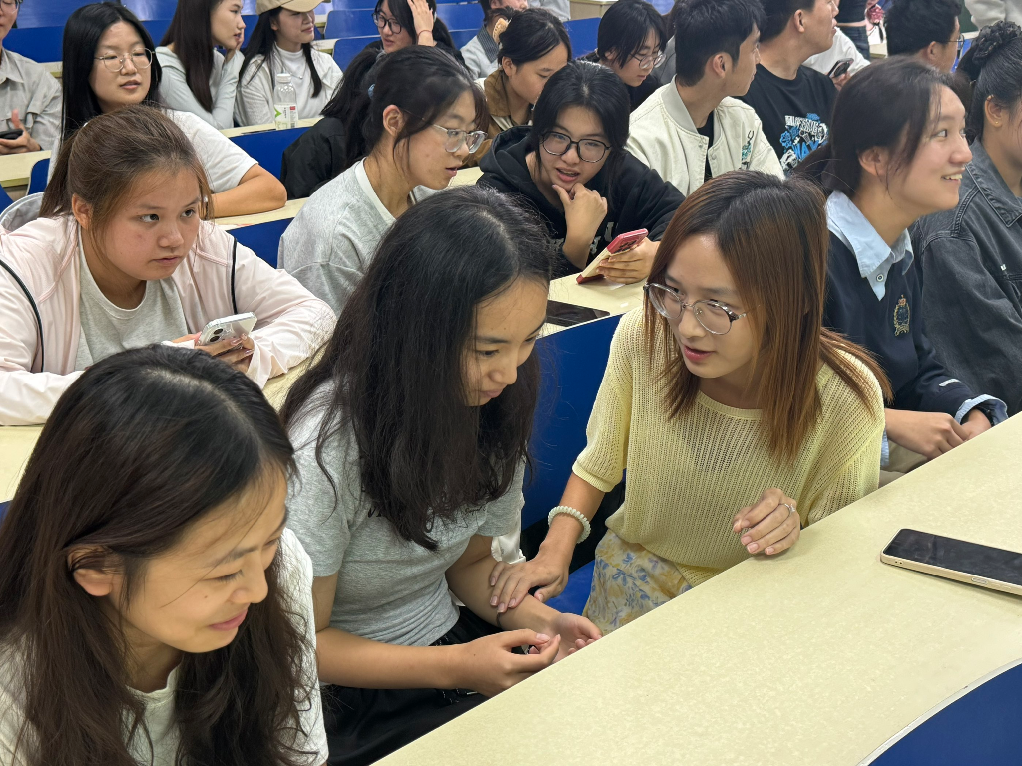 紧接着,主持人组织开展了轻松有趣的游戏环节。在“传声筒”游戏中,每组同学依次传递一句话,由最后一位成员复述内容,与原话最接近的队伍获胜。同学们全神贯注,现场不时因传出的“乌龙答案”而笑声不断,气氛热烈而欢快。在其他游戏环节中,各部门成员也展现出高度的默契与团队精神,奋勇争先,尽显风采。