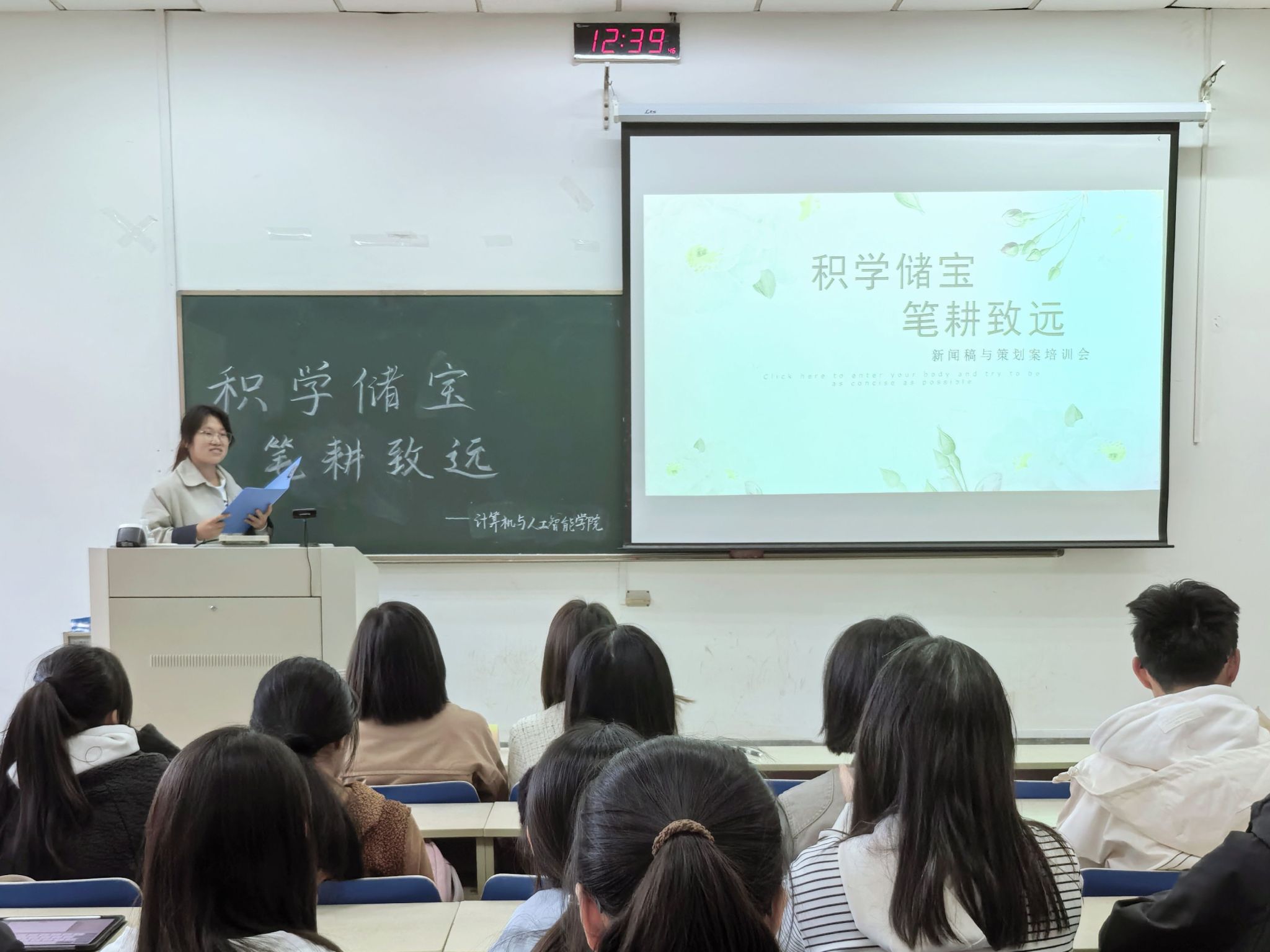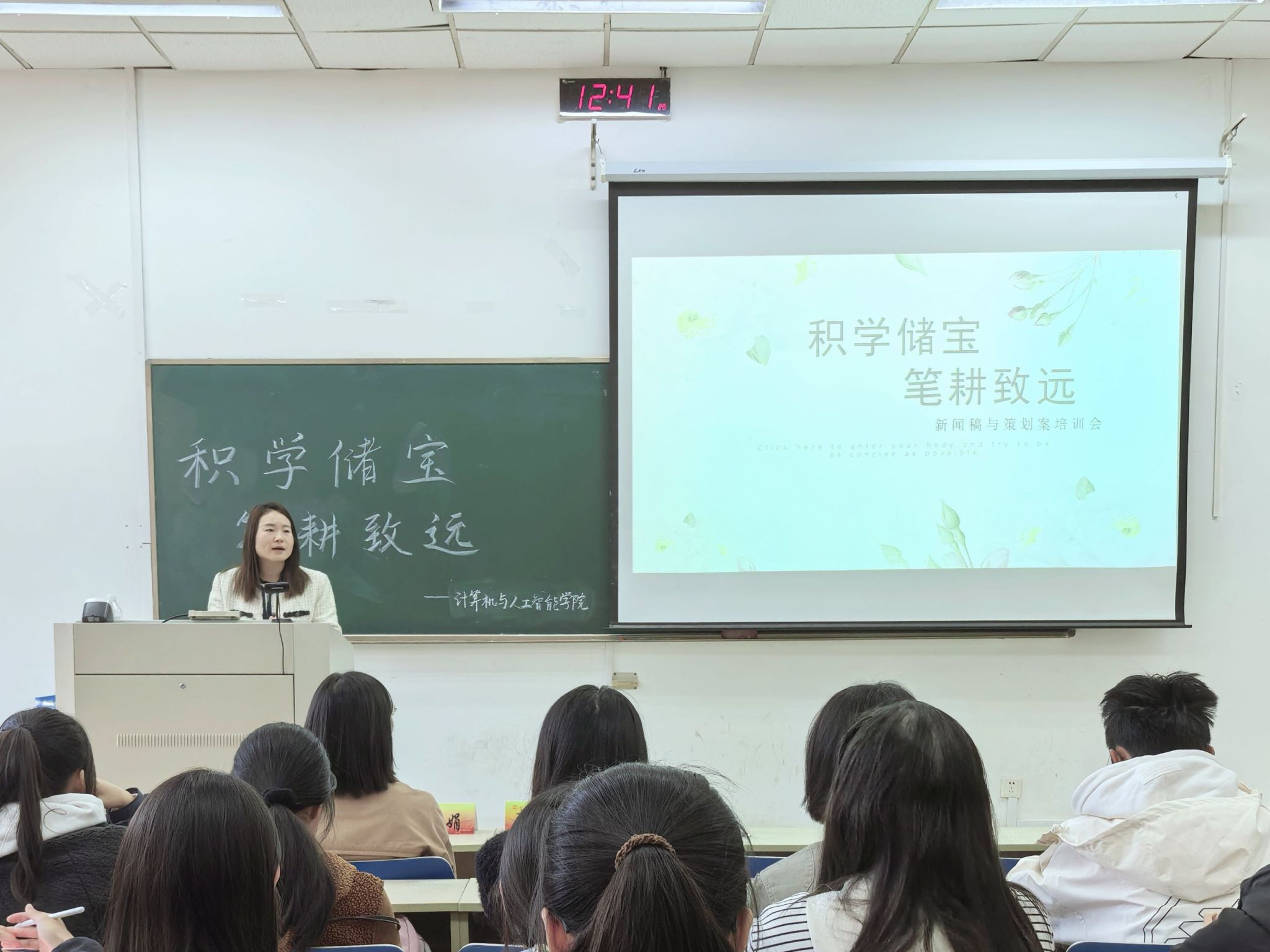 随后,施卫娟老师以“勤学、多写、多思”为切入点,系统地为同学们讲解了校园新闻稿的写作规范与实践技巧。从内宣与外宣两大方向出发,阐述了标题拟写、导语设计、主体构建的基本方法与语言风格要求,并强调了用词准确、要素齐全的重要性。通过剖析“南财要闻”“校园动态”“学术经纬”等栏目的典型稿件,深入剖析常见问题,指导同学们掌握写作规范、规避表达误区,切实增强新闻稿的严谨性与传播力。