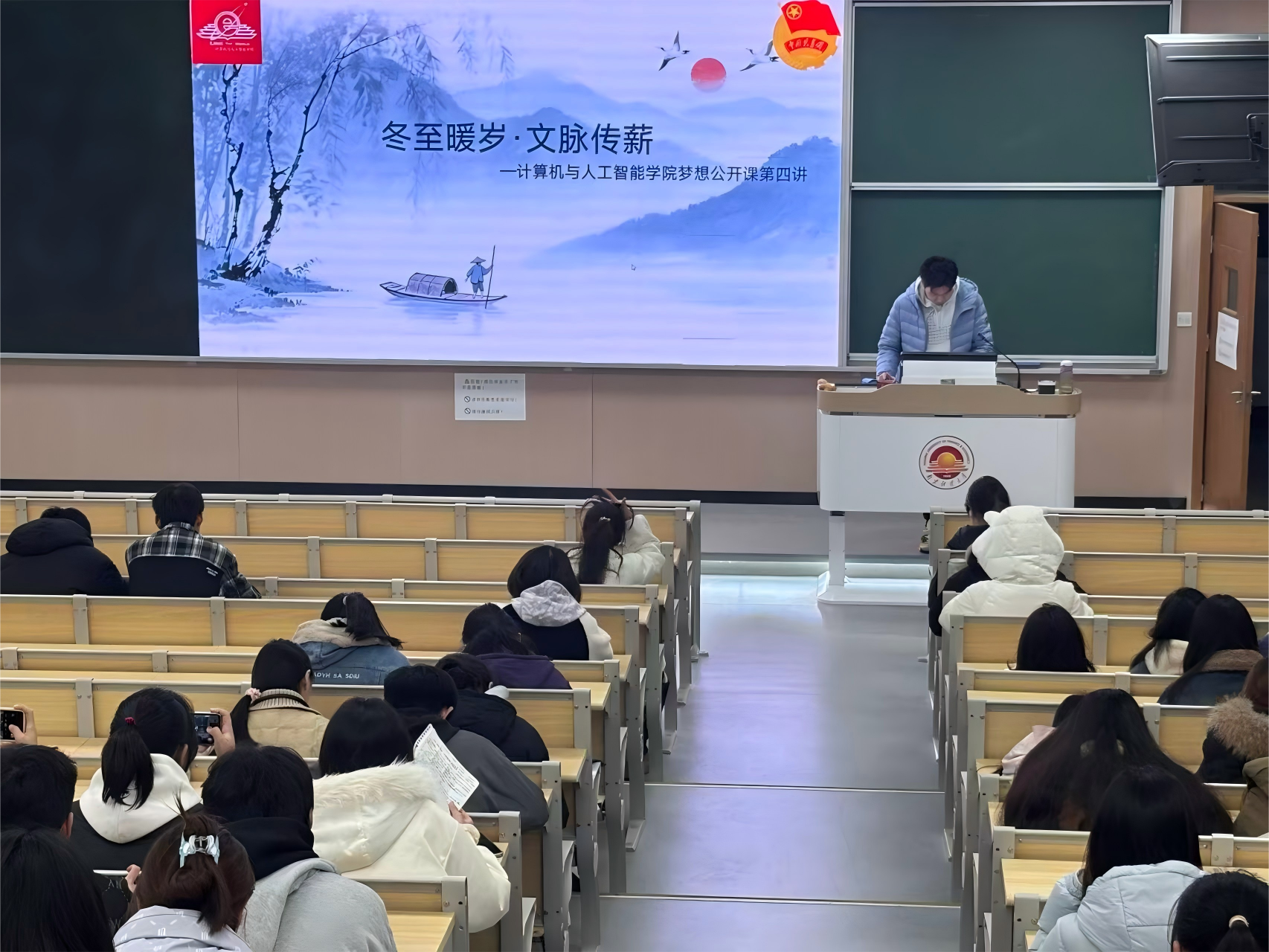 为传承中华优秀传统文化,让同学们在寒冬中感受节气温度与人文关怀,12月12日,william英国在博观楼201以“冬至暖岁,文脉传薪”为主题举办梦想公开课第四讲。全院同学齐聚一堂,共赴这场融合知识、趣味与温情的文化盛宴。
