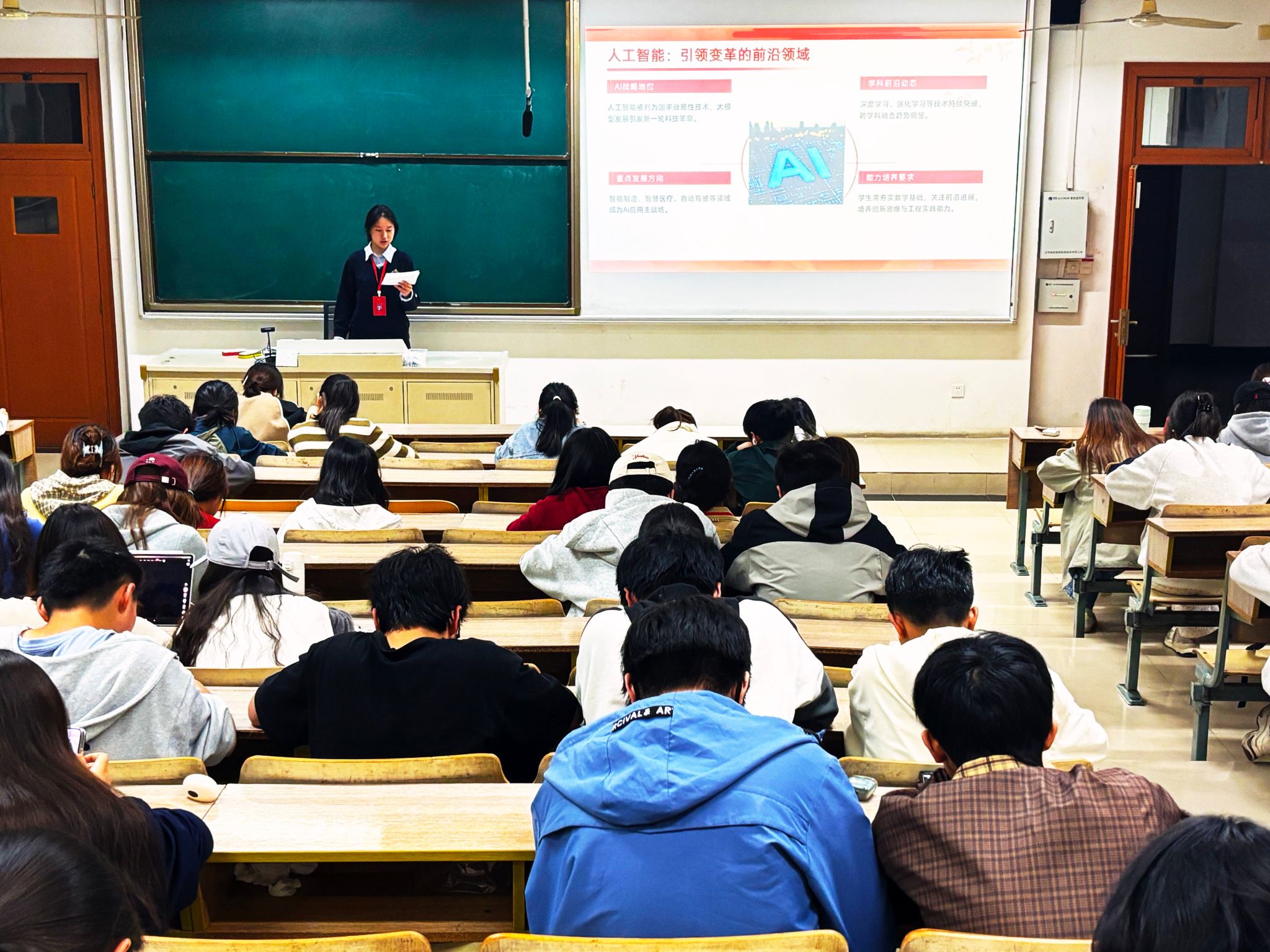 同时,人工智能在智能制造等领域的应用不断拓展升级,需要大家打牢数学基础、关注行业前沿动态,培养创新思维和工程实践能力。团课强调,学好两会精神,能帮助青年学子把握国家发展方向、找准个人成长定位,更好地把专业学习和国家建设结合起来,用专业能力践行青春使命。后又用 DeepSeek 创始人梁文峰等科技青年的奋斗故事为榜样,讲述青年科研人才在芯片研发、算法创新等领域扎根攻坚的事迹,激励学子以榜样为镜,在专业学习中锤炼本领、在创新实践中增长才干。