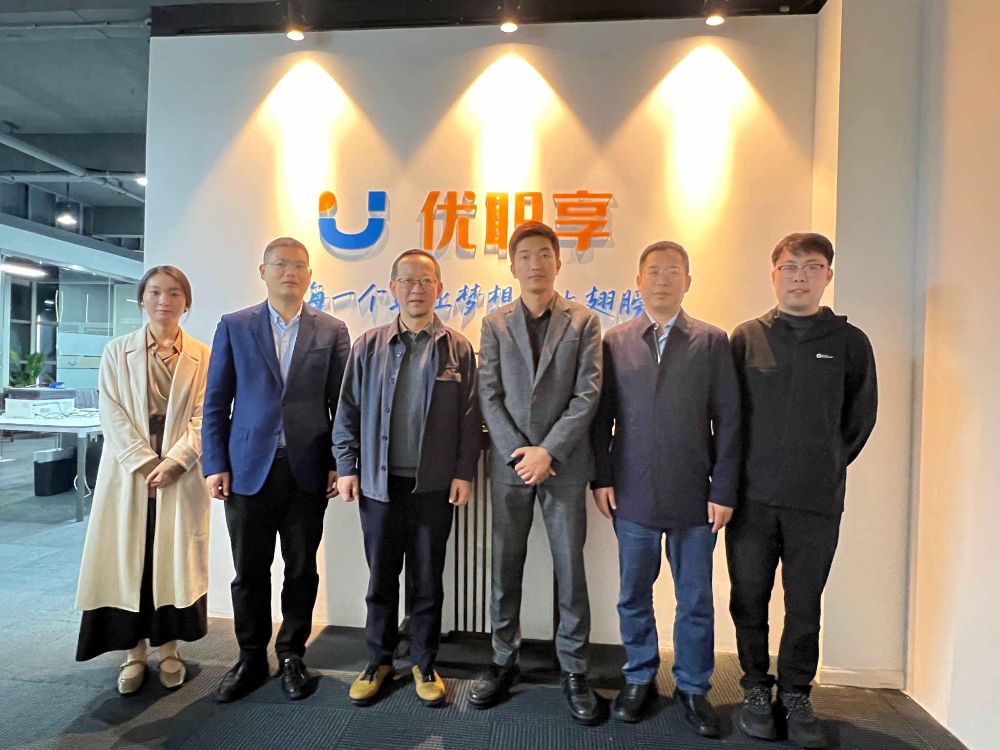 张阳军书记一行在于晨光校友的带领下参观了企业优职享(南京)信息科技有限公司并座谈交流。于晨光校友介绍了公司的发展现状及目标,他表示,优职享是一家深耕职业教育的互联网创新型公司,秉持着助力青年职业发展和企业人岗精准匹配的理念。公司致力于高校大学生职前教育和人才技能提升,有效赋能高校、学生和企业一体化发展,为青年人才提供最优的精准实习、精准就业人岗匹配解决方案。有效提高高校就业率、就业质量,帮助企业打造“一站式”人才供应链,助力青年人才成长和发展,链接企业和高校,实现学生与岗位精准匹配。大家还就当前以及未来市场对人工智能、计算机技术、虚幻引擎技术人才需求以及大学生职业规划大赛、就业指导等进行了深入交流。